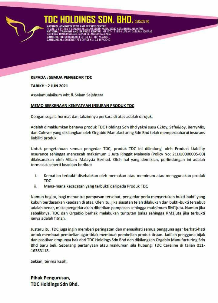 Anda tak perlu risau samaada BerryMix mempunyai kelulusan KKM atau tidak kerana BerryMix dikategorikan sebagai produk makanan seperti mana minuman-minuman lain dipasaran yang tidak memerlukan kelulusan KKM untuk dijual.BerryMix juga antara produk yang dilindungi liabiliti insuran sehingga mencecah RM1 Juta.